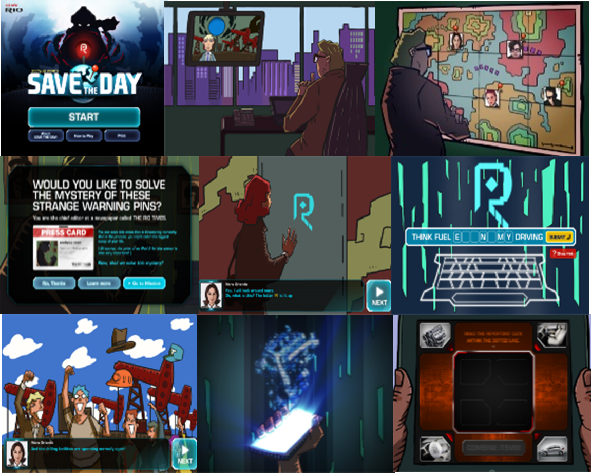 어느 날, 등장한 거대한 warning pin. 당신은 ‘The Rio Times’의 편집장이 되어 페이스북 친구들과 함께 특별취재단을 구성, 의문의 사나이 ‘R’의 메시지가 담긴 pin의 퀴즈을 맞춰내야 한다. 퀴즈를 풀 때마다 지구를 지킬 수 있는 비밀이 담겨져 있으며, 그 답 모아 고연비-친환경 자동차를 만들어 낼 힌트를 받을 수 있다.