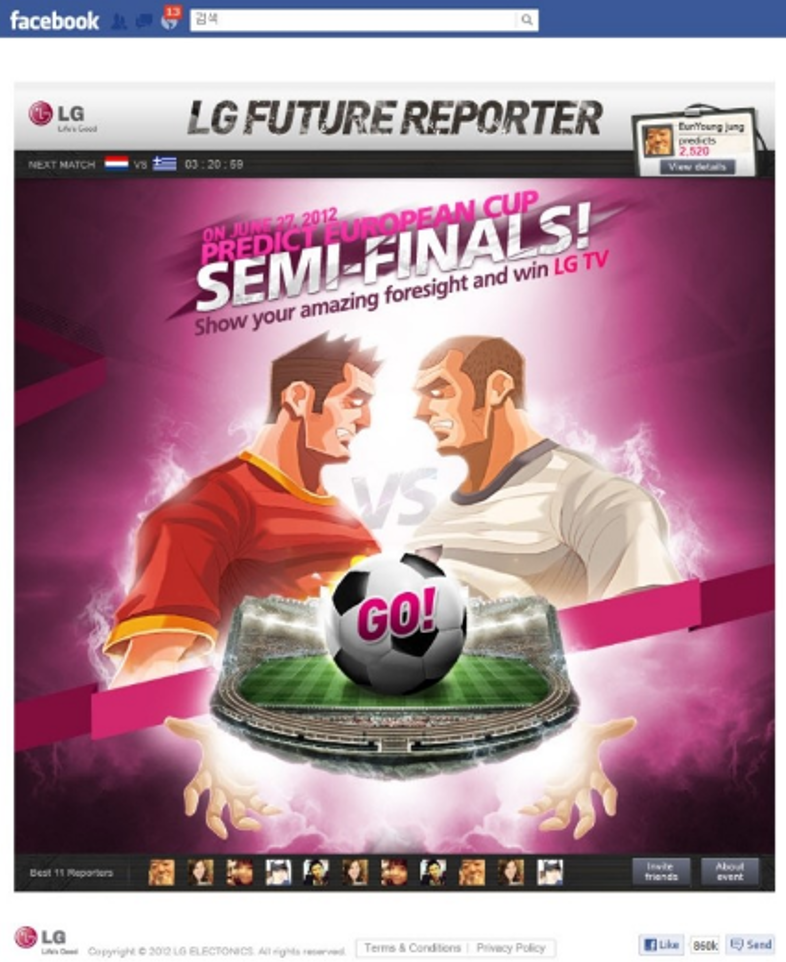 가상의 스포츠 예측 신문 ‘LG FUTURE SPORTS’의 전문 기자가 되어 유로2012의 경기 결과를 미리 예측하여 가장 정확한 예측을 한 기자에게 선물을 주는 LG TV의 글로벌 캠페인.
