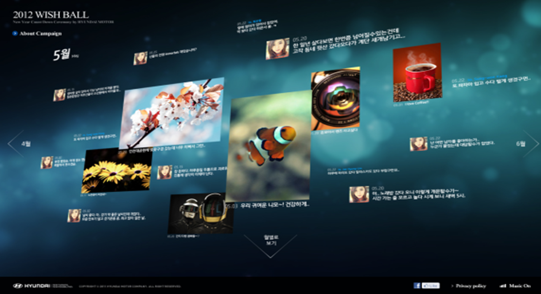 나의 1년간의 페이스북 데이터를 감성적인 영상에 합성해서 1분간 감상하고, 새해 다짐을 기록하면 서울 강남역에 실제로 준비해 놓은 달 모양의 wish ball에 기록된다.