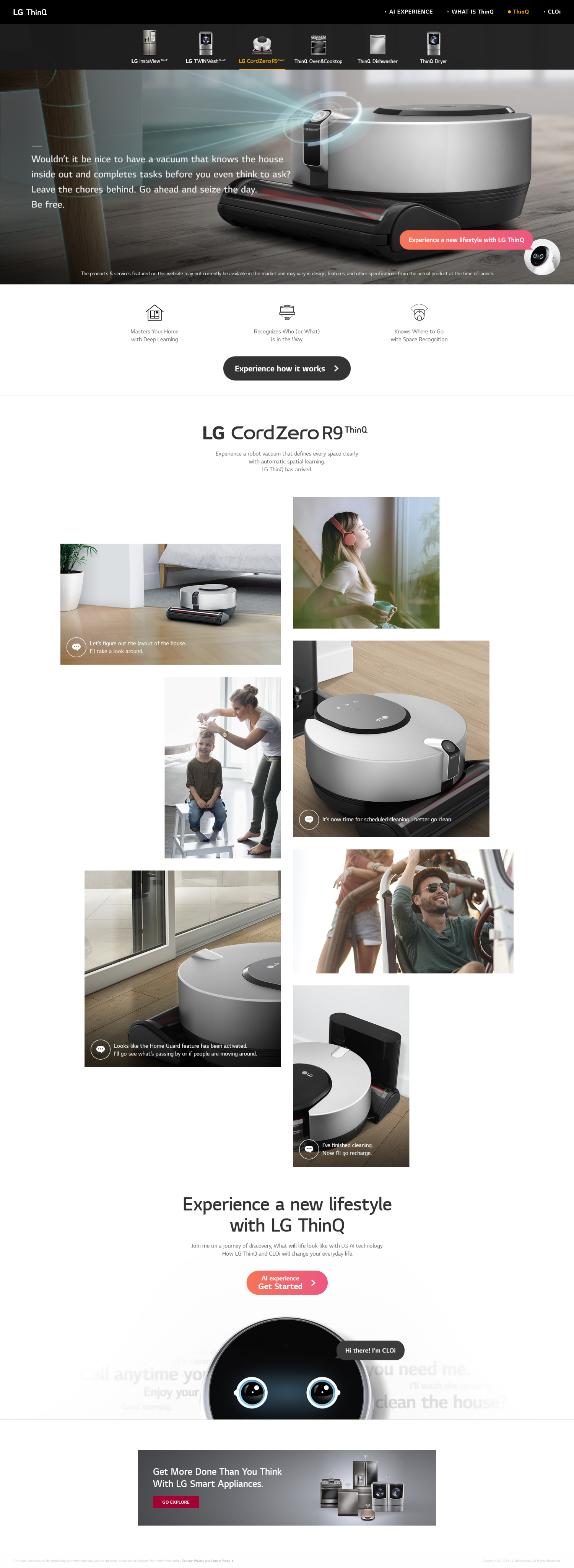 AI가전을 표방하며 LG ThinQ 브랜드 런칭에 맞춰 AI를 체험하는 스토리텔링형 콘텐츠와 ThinQ 전 제품 라인업을 소개하고 AI가 바꾸는 라이프스타일 제시하는 브랜드 사이트 구축