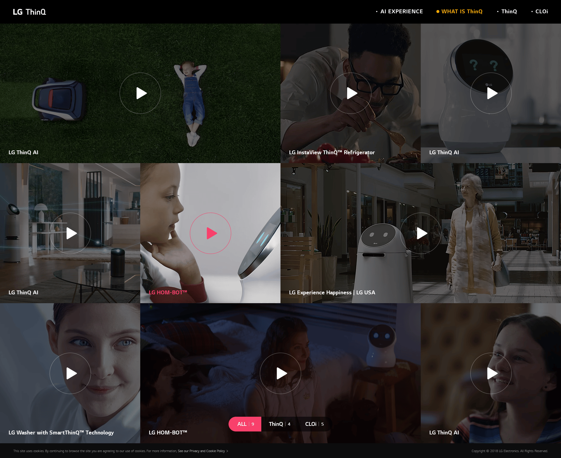 AI가전을 표방하며 LG ThinQ 브랜드 런칭에 맞춰 AI를 체험하는 스토리텔링형 콘텐츠와 ThinQ 전 제품 라인업을 소개하고AI가 바꾸는 라이프스타일 제시하는 브랜드 사이트 구축